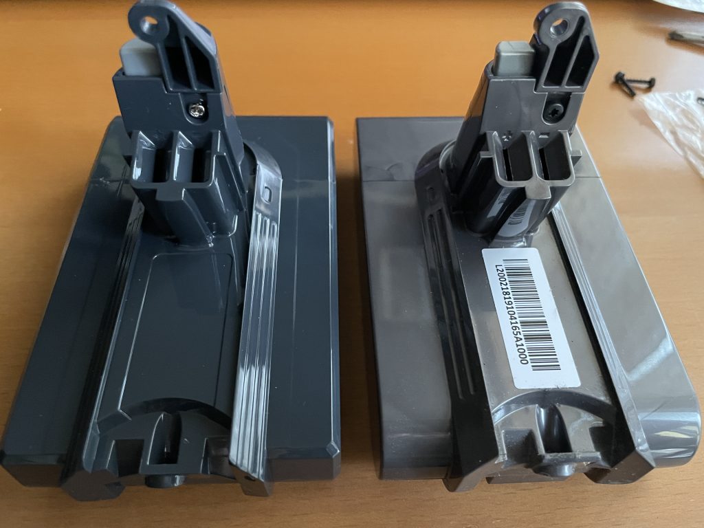 右側がDysonの純正バッテリー(使えなくなったもの)