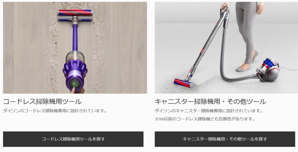 私の愛用のDyson V6シリーズの他、かなりの種類、シリーズにも対応しているようなのでお持ちの掃除機の型番に合えば使えます。