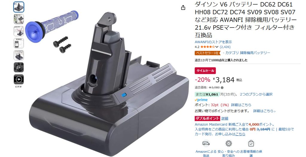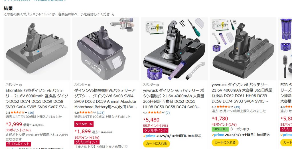まずは、型番に合うバッテリーを選び、内容を見て、かかくの比較を行いました。