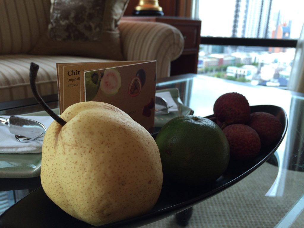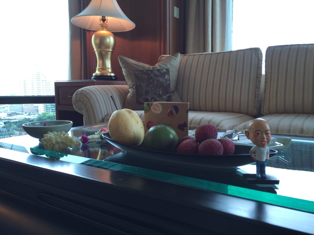 フルーツの価格に高い、日本からすると嬉しいですね。タイでは結構リーズナブルだけど、フルーツのある部屋っていいですね!
