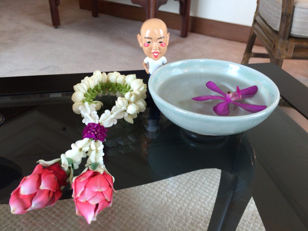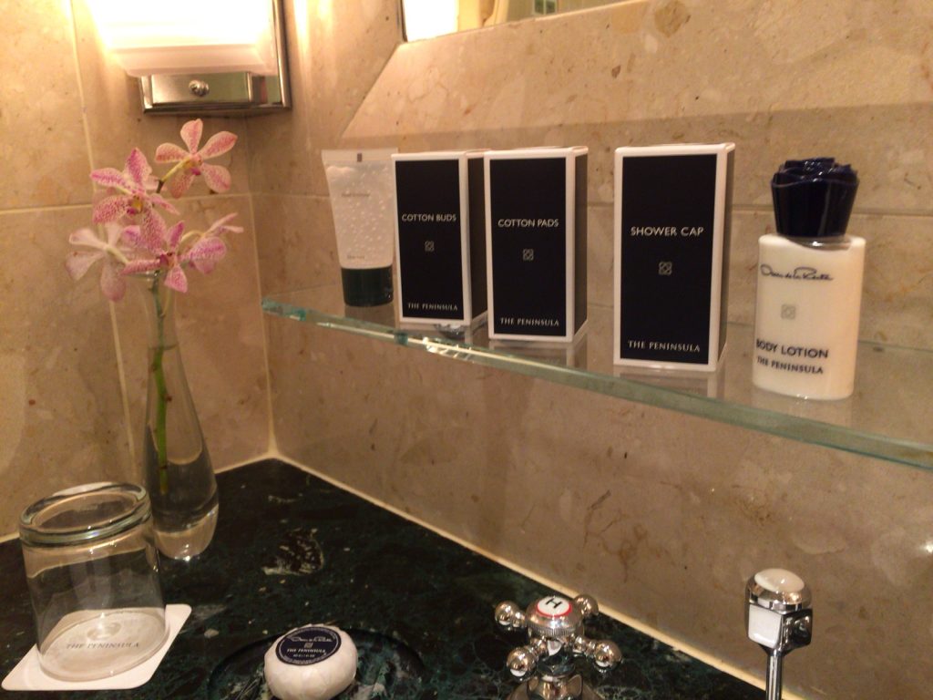アメニティーも品よく並べられていて、デンファレ(欄)の生花もありました。