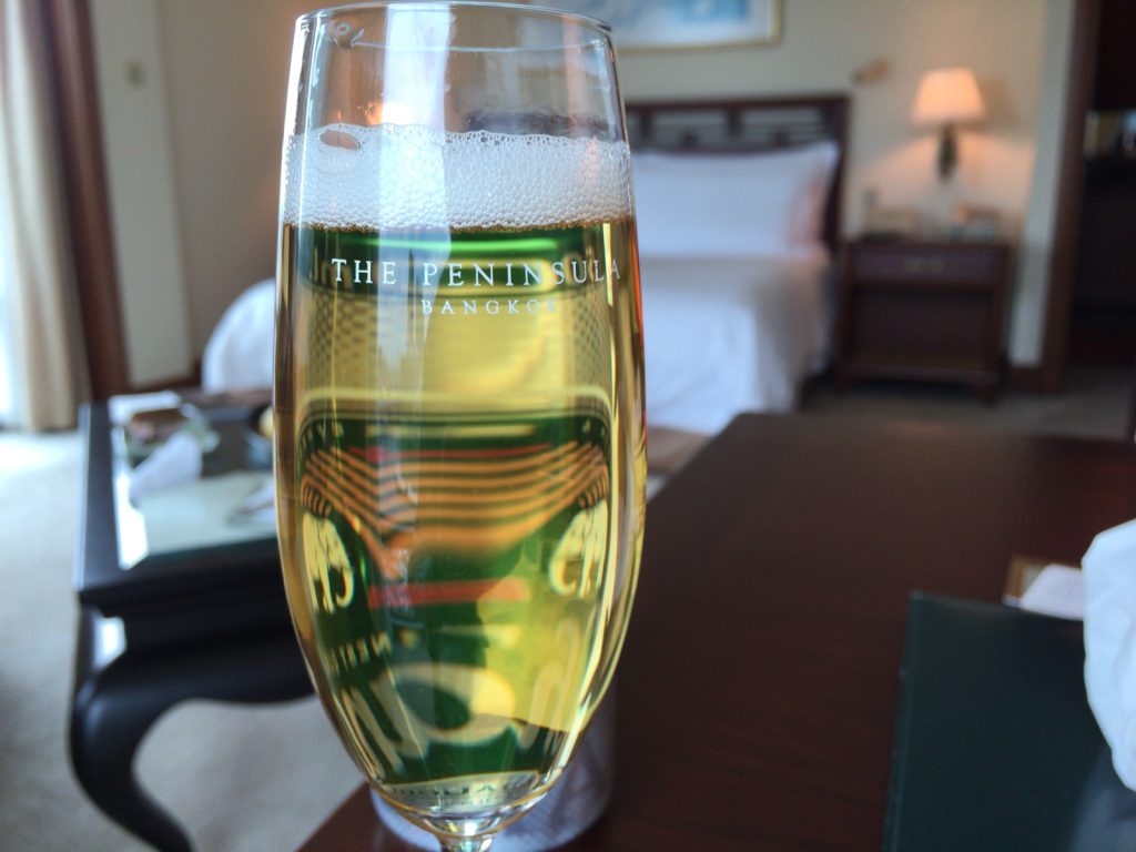 シャンパンをロックグラスで頂くとか?赤ワインを白ワイングラスで頂くとか?結構ホテルのグラスって限られているのであり得ます。がこのペニンシュラバンコクは違います!