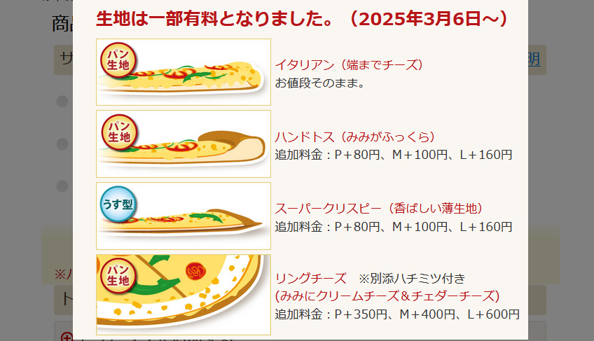 ピザーラさんでは生地を選ぶ事が出来ます!(ちなみに生地を選ぶと料金が追加されます!)
