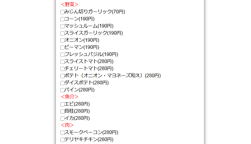 トッピングなしで注文すればもう少しだけ安いですが、何か味気ないですよね。