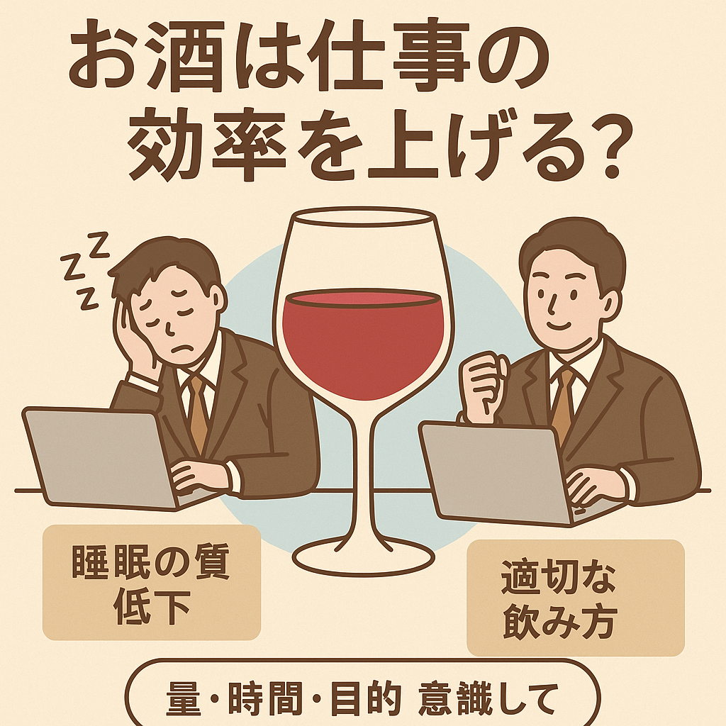 お酒は一時的に気分を高め、仕事の効率が上がったように感じることがありますが、実際には睡眠の質や翌日の集中力に悪影響を及ぼすことが多いです。