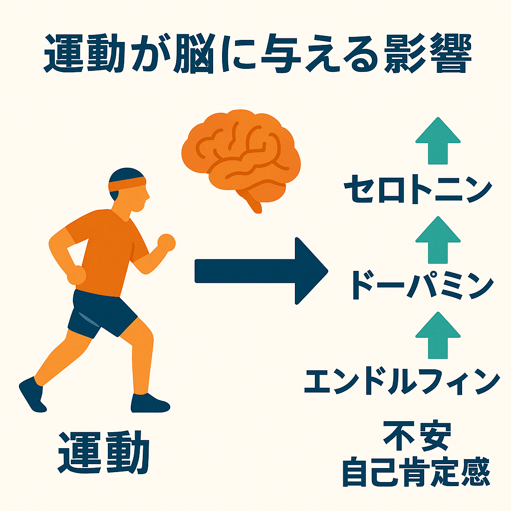 運動によってセロトニンやドーパミンが分泌され、不安が減り、自己肯定感が高まり、睡眠も改善されます。