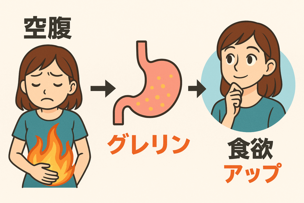 - 生理的空腹:体が本当にエネルギーを必要としている状態。血糖低下やホルモン分泌により自然に起きる。