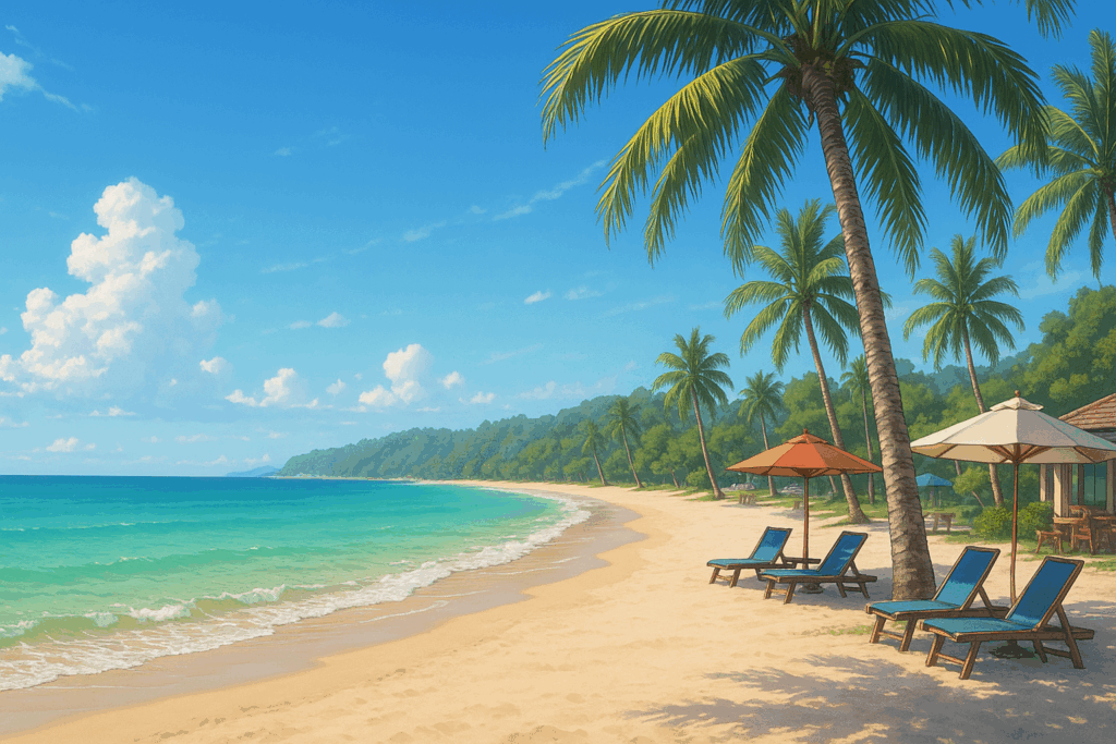 プーケット北部の海は透明度が高く、エメラルドグリーンに輝く海とサラサラの白砂が広がります。日差しが強すぎない午前中〜昼過ぎは、特に写真映えする時間帯。