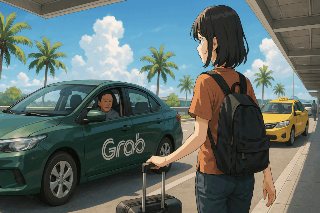 空港到着後、タクシーまたはGrabでナイトンビーチへ直行。移動は片道15分程度。