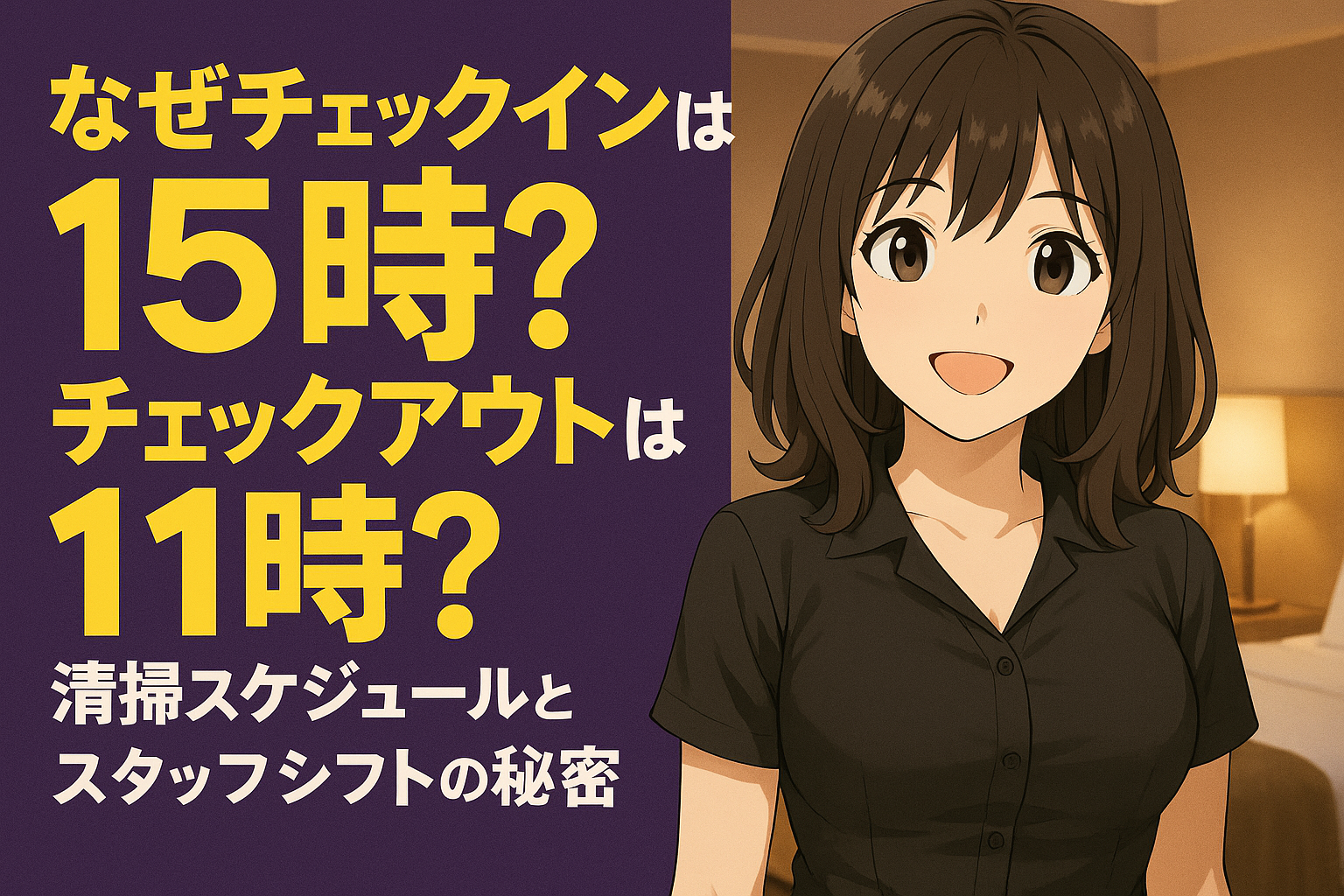 今回は「ホテルは、なぜチェックインは15時?チェックアウトは11時?清掃スケジュールとスタッフシフトの秘密」です。