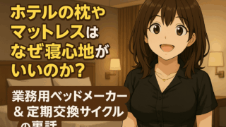 「ホテルのタオルやスリッパが白いのはなぜ?清潔感・コスト効率・補充のしやすさという舞台裏をユーモアを交えて解説。次の宿泊がもっと楽しくなる豆知識!」