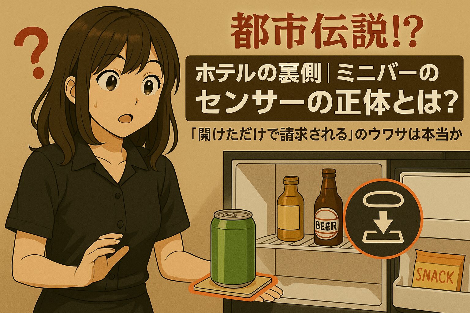 今回は「都市伝説⁉ ホテルの裏側|ミニバーのセンサーの正体とは?開けただけで請求される”のウワサは本当か?」です。