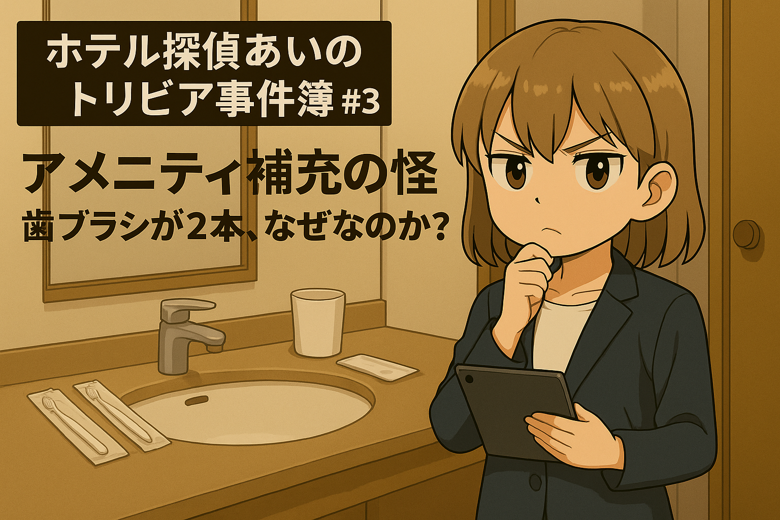 今回は「ホテル探偵あいのトリビア事件簿 #3 アメニティ補充の怪 ― 歯ブラシが2本、なぜなのか?」です。