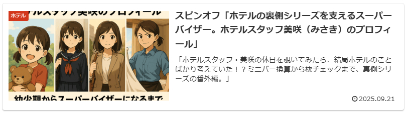 今回の「スピンオフ|ホテル探偵あいプロフィール紹介 ― 秘密を抱えた小さな名探偵」は如何でしたでしょうか?