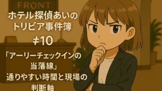 ホテル探偵あいのトリビア事件簿 🕵️♀️ ホテル探偵あいのトリビア事件簿 #10 アーリーチェックインの当落線 ― 通りやすい時間と“現場の判断軸”