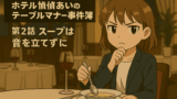 | 食前 | まだ食べない(スープが出てからがマナー) | 先に完食してしまう |