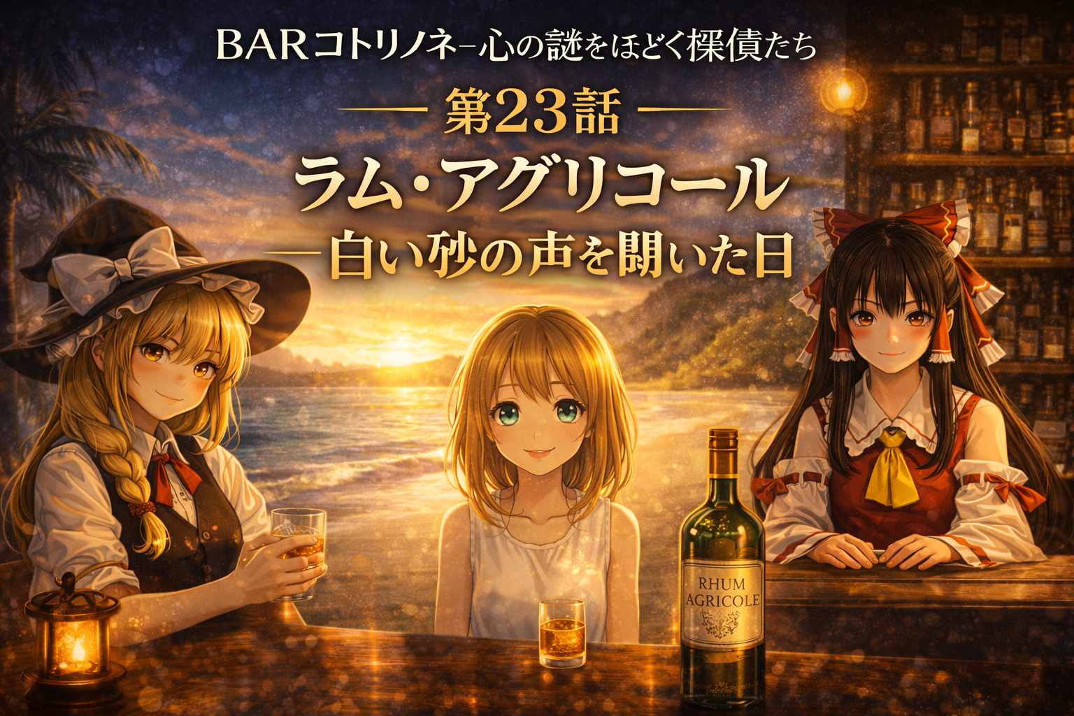BAR コトリノネ ― 心の謎をほどく探偵たち 第23話|ラム・アグリコール ― 白い砂の声を聞いた日 BAR コトリノネ X Facebook はてブ LINE コピー 2026.01.14 スポンサーリンク トコナ 白い砂に残る声。ラム・アグリコールが記憶を蘇らせる夜。💫 続きは本編で。 白い砂の上で、誰かの声を聞いた——。風に消えた記憶が、ラム・アグリコールの香りで蘇る。その夜、初めて“光”が現れた。名は、アカリ。心を照らす新しい灯りが、BARコトリノネに差し込む。 PR スポンサーリンク 関連記事: BAR コトリノネ ― 心の謎をほどく探偵たち 第22話|ベルモット ― 黒い帽子の紳士 BAR コトリノネ ― 心の謎をほどく探偵たち 第21話|PXシェリー 送られなかった“最後の返事” BARコトリノネ トコナの深夜ラボノート【第2話】雨粒が窓を叩く夜 ― 雨は心のメトロノーム BARコトリノネ トコナの深夜ラボノート【第3話】灯りを消せない夜 ― 心が静まらない理由
