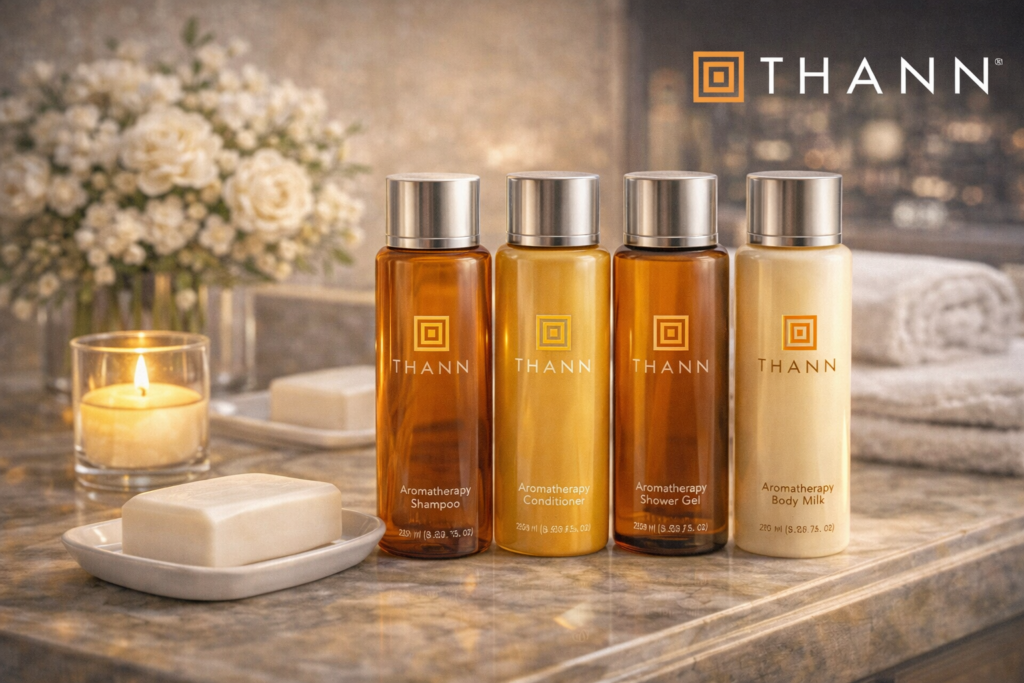 THANNのアメニティが全室に完備され、柑橘・ユーカリ・ライスブランの香りが広がる。