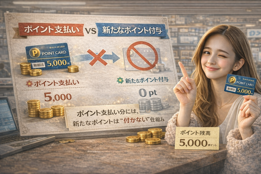 多くの店で、“ポイント支払い分にはポイントが付かない”仕組みになっています。