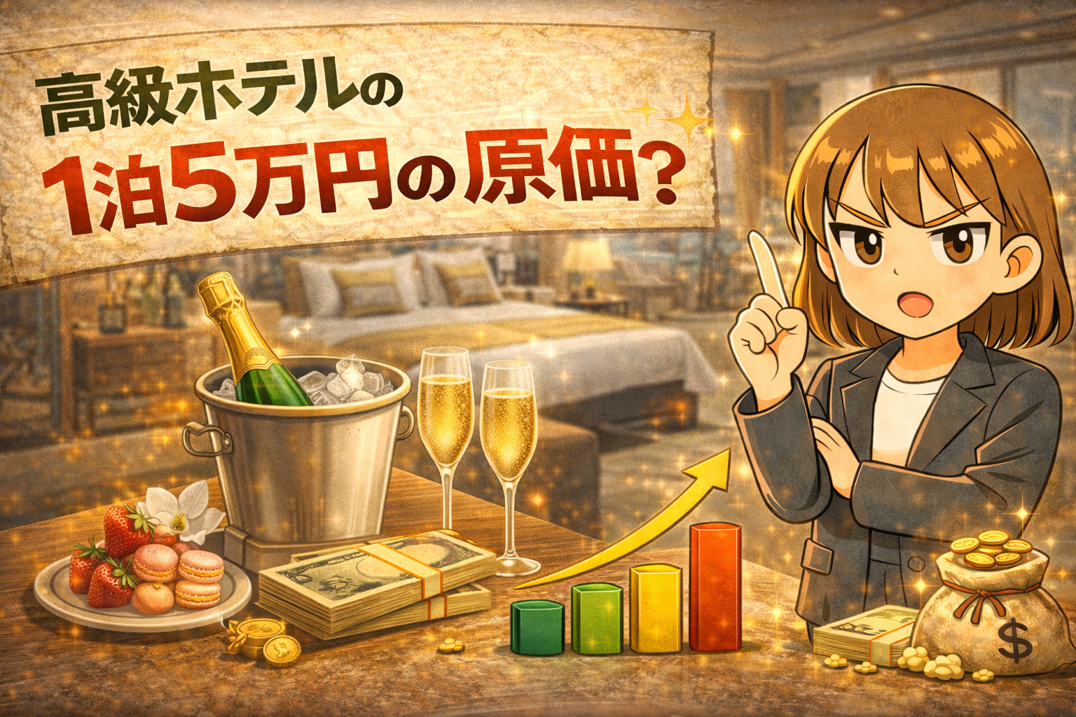1泊5万円のホテルの原価はおよそ2万円。
