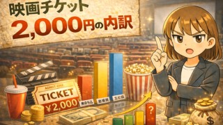 映画チケット2,000円のうち、映画館の取り分はいくら?配給会社、著作権料、設備費、人件費など、1枚のチケットに隠れたリアルな経済構造をモデルあいが解説。