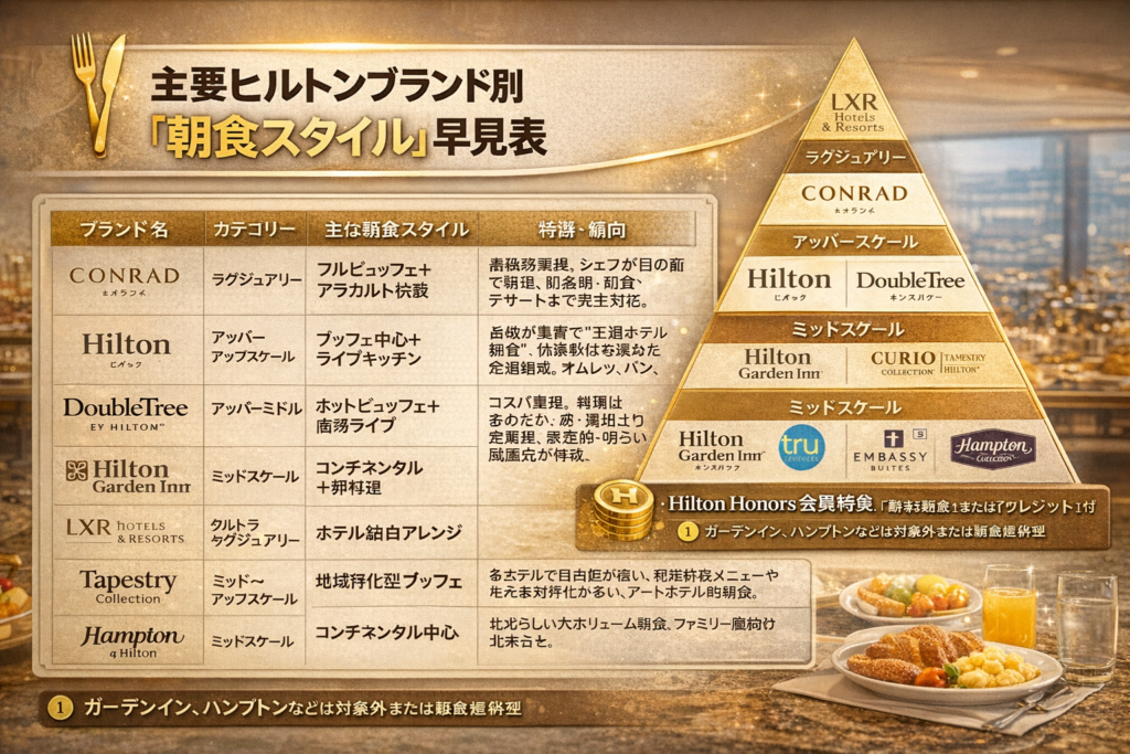 🍽️ 主要ヒルトンブランド別「朝食スタイル」早見表