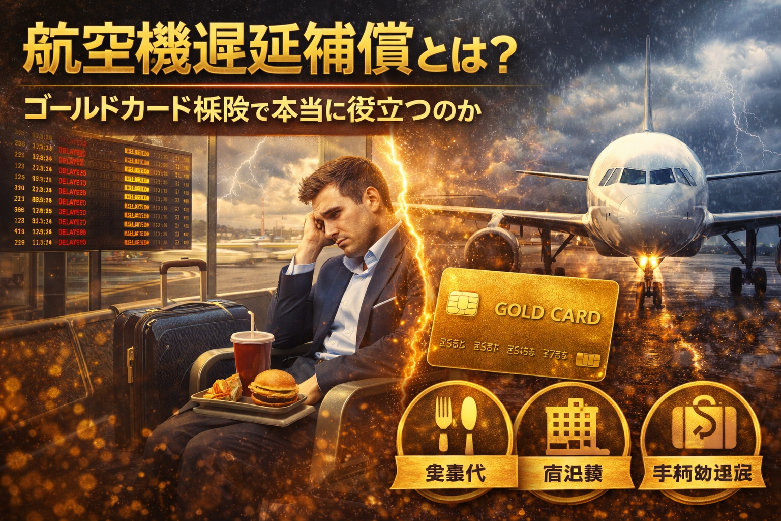 航空機遅延補償は、ゴールドカードの中でも実際に役立つ可能性がある保険の一つです。